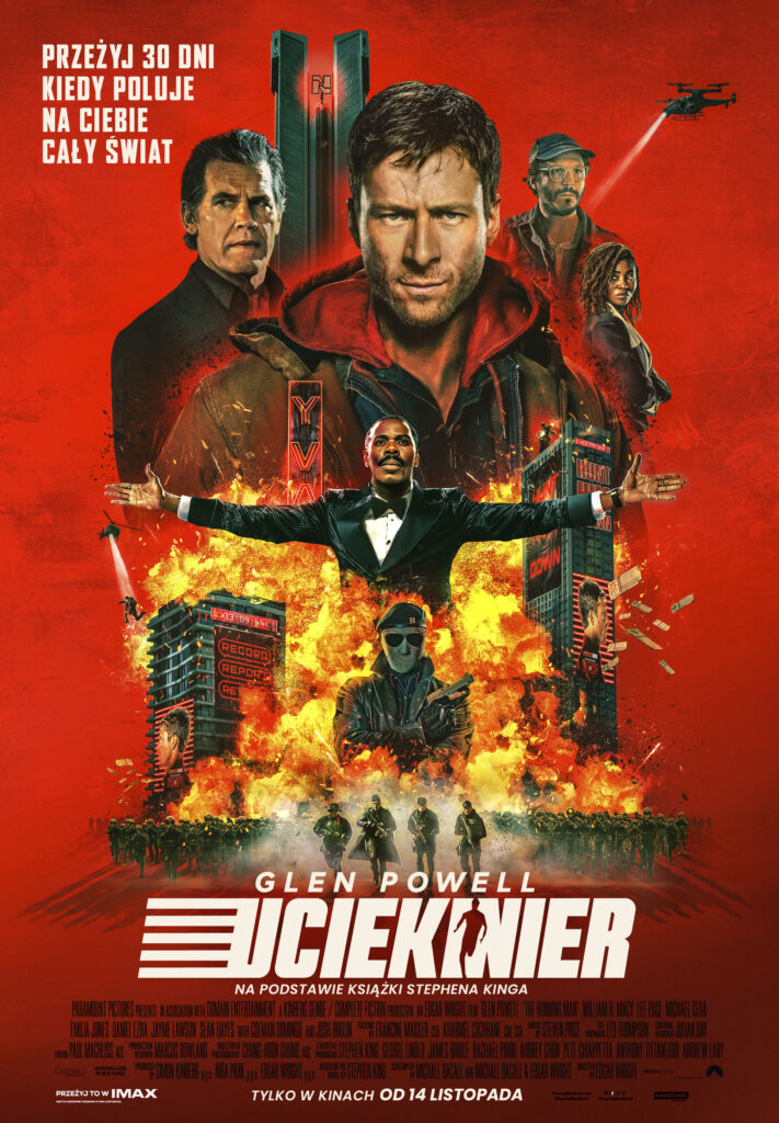 „Uciekinier” to ekranizacja emocjonującej powieści Stephena Kinga w reżyserii Edgara Wrighta, specjalisty od niesztampowego kina na pełnych obrotach i twórcy tak nowatorskich i odjechanych obrazów jak „Baby Driver”, „Ostatniej nocy w Soho” i „Scott Pilgrim kontra świat”. W roli głównej Glen Powell – gwiazda hitów „Twisters” i „Top Gun: Maverick”.