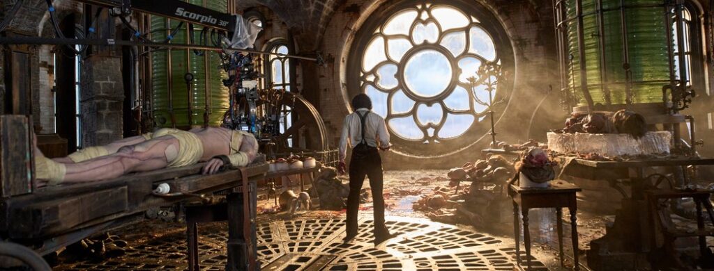 Del Toro zanurza swoją wersję „Frankensteina” w wyraźnie umownej, plastycznej estetyce. Obraz jest piękny, momentami malarski (z być może przesadnie użytym CGI), ale jego baśniowość podszyta steampunkową ornamentyką, oddala nas od realnego świata Shelley. Im bardziej film ucieka w stylizację, tym mniej pozostaje w nim egzystencjalnego niepokoju. Tragedia zamienia się w piękną książkową ilustrację. No właśnie – w baśń.