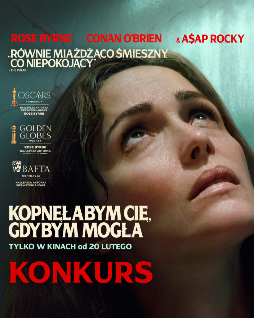 Film „Kopnęłabym cię, gdybym mogła” wyprodukowany przez studio A24, z nominowaną do Oscara i nagrodzoną Złotym Globem kreacją Rose Byrne, to emocjonalny rollercoaster o kobiecie, która każdego dnia toczy walkę z rzeczywistością, rozpadającym się życiem i własnymi granicami wytrzymałości. Zapraszamy do udziału w konkursie, w którym rozdajemy 5 podwójnych zaproszeń na ten film do kin sieci Cinema City.