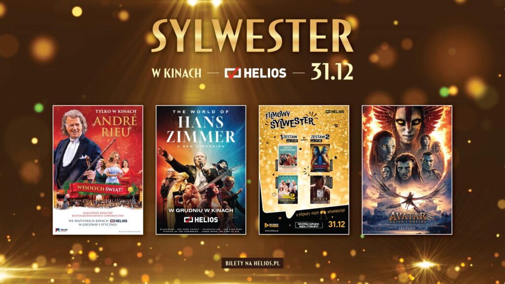 Z okazji nadchodzącego Sylwestra, sieć kin Helios przygotowała seanse, dzięki którym widzowie będą mogli przywitać Nowy Rok w doskonałej atmosferze. 31 grudnia we wszystkich kinach sieci odbędą się aż dwa koncerty – z muzyką Hansa Zimmera oraz André Rieu. Kinomani przez cały dzień będą mogli wybrać się na projekcje wielkiego hitu: „Avatar: Ogień i popiół”, a wieczorem – na Filmowego Sylwestra!
