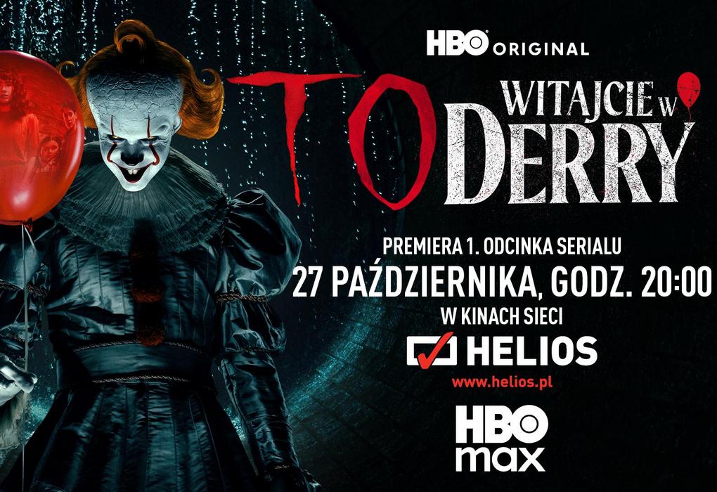 Dzięki współpracy z platformą HBO Max, sieć kin Helios jako jedyna zaprezentuje pierwszy odcinek „To: Witajcie w Derry” na wielkim ekranie! Kolejne odcinki serialu będzie można oglądać na platformie HBO Max.